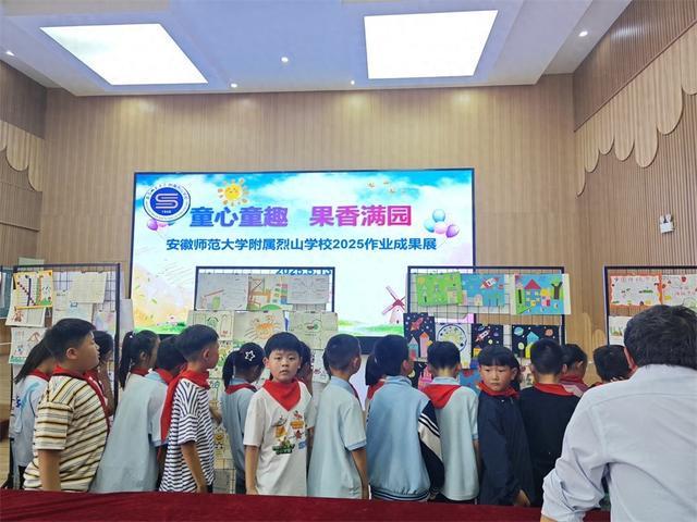 5月14日下午,安师大附属烈山学校在多功能厅举办了一场别开生面的“童心童趣,果香满园”作业成果展。此次展览涵盖了小学语文、数学、英语三个学科的优秀作业,吸引了众多师生前来参观。