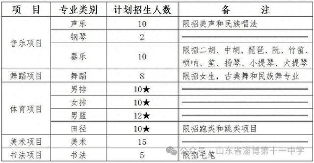 山东省淄博第十一中学2025年艺体特长生招生方案